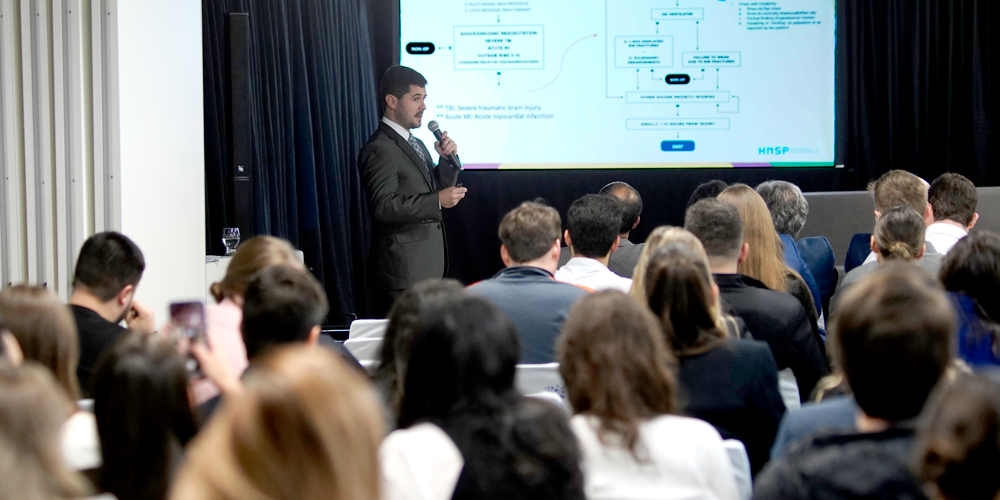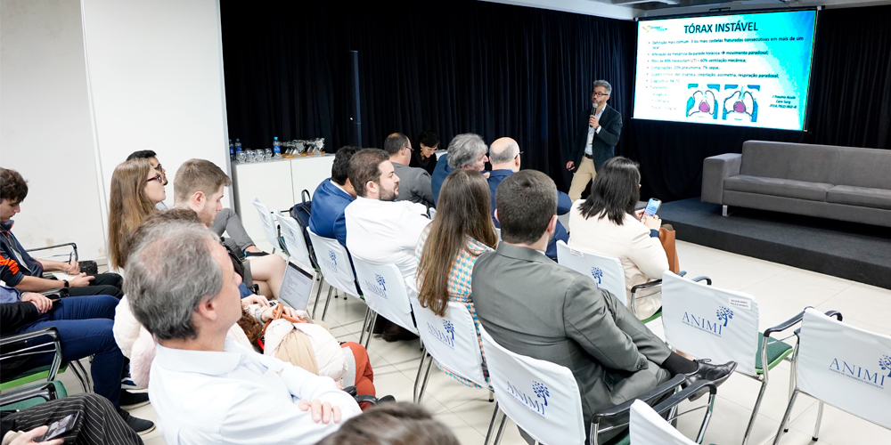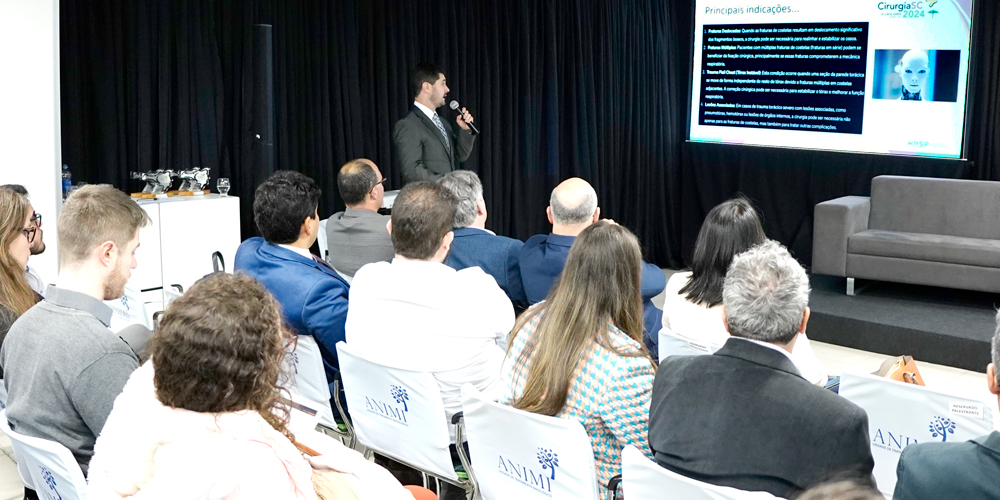 A mesa-redonda sobre cirurgia do trauma foi um dos pontos altos do evento. Sandino Ragnini Sá destacou-se ao discutir o manejo clínico e cirúrgico das fraturas do gradil costal, enquanto Thiago Leandro Marcos abordou o tratamento das complicações agudas e tardias do trauma torácico. Suas contribuições foram essenciais para as discussões, trazendo perspectivas valiosas e práticas.